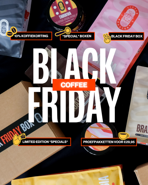 De Black Friday Box is speciaal samengesteld voor koffieliefhebbers die onze vers gebrande koffies willen leren kennen. Je krijgt vier van onze bestsellers, allemaal met hun eigen smaakprofielen en karakter. Alleen verkrijgbaar tijdens Black Coffee Friday!