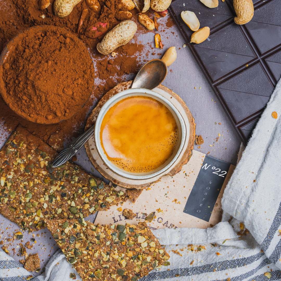 Vol, krachtig en kruidig. Doordat we de bonen langer branden, verdwijnen de frisse zuren en maken ze plaats voor diepe smaken van pure chocolade, noten en karamel.