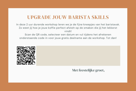 Écht lekkere koffie zetten krijg je niet voor elkaar met een simpele ‘druk op de knop’. Nope: koffiezetten is een hele kunst. Een kunst die wij maar al te graag met anderen delen! Ken jij een koffieliefhebber die helemaal klaar is voor next level koffie-zet-skills? Dan ga je hem of haar vast en zeker blij maken met deze cadeaubon.