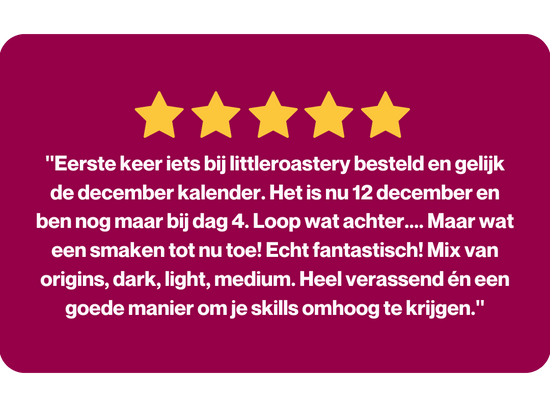 We nemen je 24 dagen mee op reis langs de mooiste plantages, bijzondere verwerkingsmethoden en unieke terroirs. Tot kerst open je elke dag een nieuw koffiecadeautje en ontdek je smaken die je nog nooit hebt geproefd. Smaken die je smaakpapillen laten smeken om nog een slok, en koffies die je uitnodigen om even stil te staan bij jouw koffiemoment. Van vertrouwde favorieten tot exclusieve Limited Editions die je nergens anders zult vinden. De Decemberkalender is een ontdekkingsreis in smaak, geur en verhaal: het ultieme cadeau voor koffieliefhebbers!