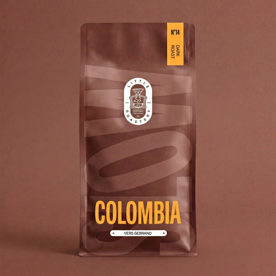 Deze single origin uit diverse regio’s in Colombia wordt geteeld op 1.200 - 2.000 meter hoogte. De bonen worden verwerkt volgens het gewassen verwerkingsproces en donker gebrand, wat zorgt voor een krachtige body met frisse tonen van grapefruit en rode bessen en een volle nasmaak van pure chocolade.