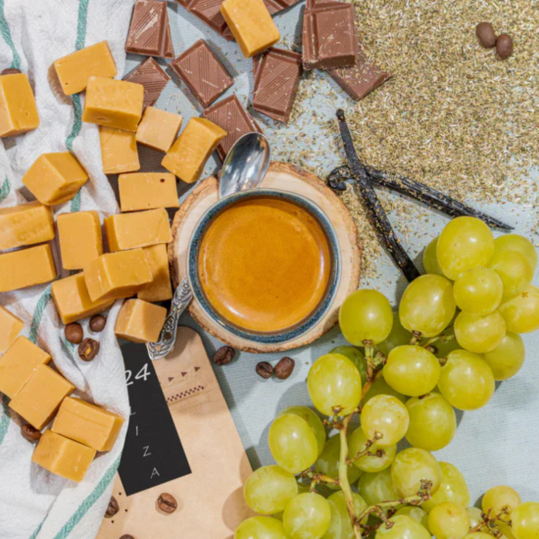 Smaaknotities light roast: Druif, toffee, melkchocolade, kamille en vanille