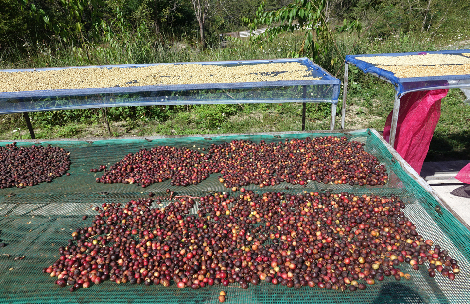 Bij de 'natural verwerkingsmethode' worden de koffiebessen na het plukken in hun geheel gedroogd, zodat het vruchtvlees langzaam zijn zoetheid en aroma’s aan de boon afgeeft. Daniso en zijn familie plukken met de hand alleen de rijpe, rode bessen en laten ze vervolgens drogen op verhoogde bedden in de zon. De bessen worden regelmatig gekeerd voor een gelijkmatige droging, een proces dat 15 tot 22 dagen duurt. Het resultaat is een levendige, fruitige koffie vol natuurlijke zoetheid en karakter.