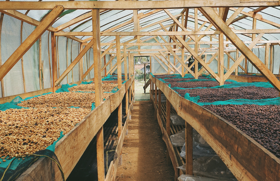 Deze koffie is een schoolvoorbeeld van hoe zorgvuldige verwerking een variëteit kan laten shinen. De bessen worden volledig rijp geplukt en daarna in hun geheel gedroogd op verhoogde marquesinas. Hier liggen ze wekenlang te drogen, beschermd tegen regen en felle zon, en worden ze meerdere keren per dag omgeschept voor een gelijkmatige droging. Doordat het vruchtvlees zolang om de boon blijft zitten, neemt de koffie een diepe zoetheid en uitgesproken fruitigheid op. Precies waar een goede natural om bekend staat.